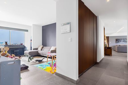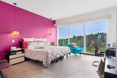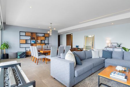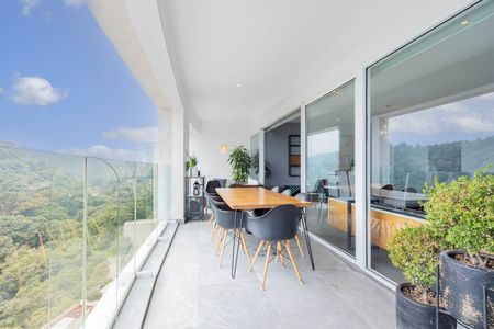 Departamento en Basalto, ubicado en el exclusivo fraccionamiento Cumbres de Santa Fe, en perfecto estado de conservación. Cuenta con una superficie de 303 m² que incluye una terraza de aproximadamente 25 m² con vista a la cañada al sureste desde la sala, comedor, recámara principal y secundaria, ambas con vestidor y baño. Al noroeste, una tercera recámara también cuenta con vestidor y baño. El departamento además ofrece una sala familiar, cocina integral equipada, y un cuarto de servicio.