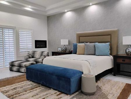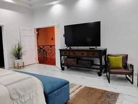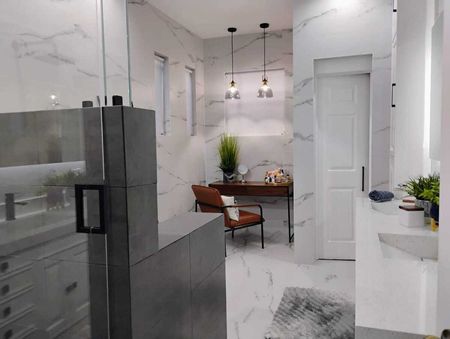 - Planta alta: recámara principal con baño tipo spa (sauna, porcelanato tipo mármol, vestidor), dos recámaras secundarias con baño y clóset, espacio adicional tipo estudio o gimnasio.