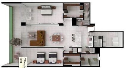 Departamento en venta con 209.89 m2 de 2 recamaras, cada uno cuenta con baño propio y vestidor, un baño para visitas, sala, comedor, cocina y terraza.