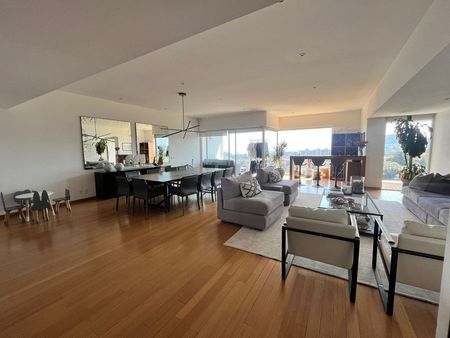 Amplia estancia con sala y comedor y bar; acceso a terraza con espacio para sala y preciosa vista. Medio baño.