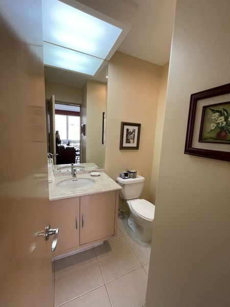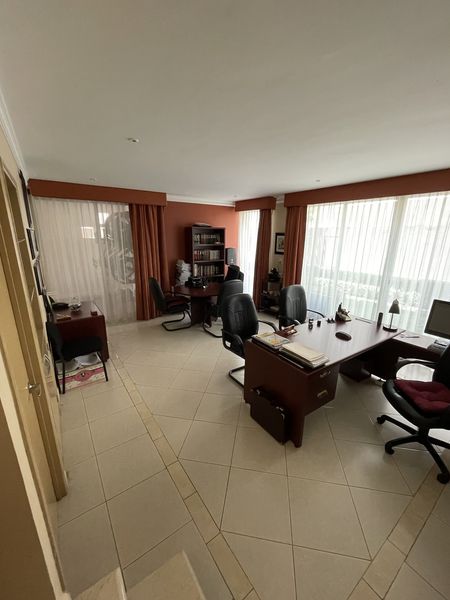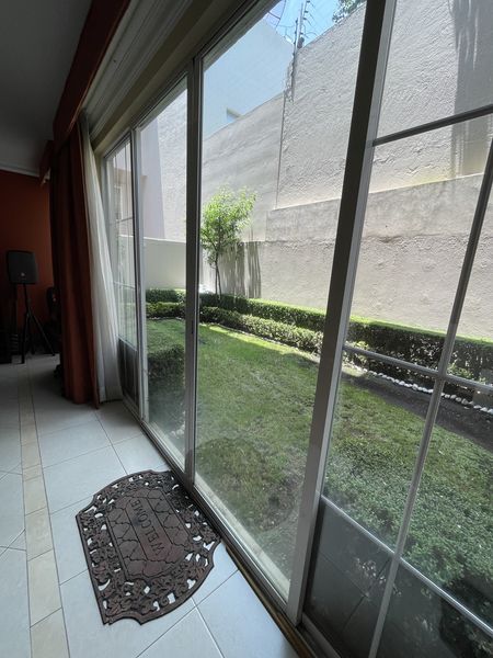 Espacioso cuarto de televisión o oficina con baño completo y salida a un jardín privado.