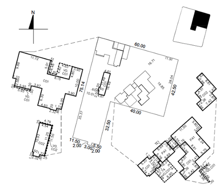 Frente 60 X 75.14 de un lado, del otro lado mide 42.50M2.