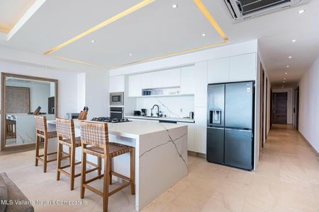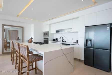 Bienvenido a Marazul ubicado frente al mar justo en el extremo norte de Bucerias a solo 30 minutos del aeropuerto de Puerto Vallarta. En una torre de solo 23 unidades te brinda la privacidad y el descanso que mereces. Departamento de 186 m2 cuenta con 2 amplías habitaciones mas un estudio, además dos baños completos en cada habitación y medio baño en sala y comedor. Completamente amueblado con un gusto exquisito listo para ser habitado. Una vista imperdible en la terraza te brinda la sensación de estar en el mar, además en un complejo que tiene todo para que pases momentos inolvidables, Plus alberca climatizada con acceso directo a la playa y además alberca en roof top con la mejor vista. Cuenta con estacionamiento y bodega subterráneo.