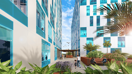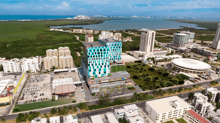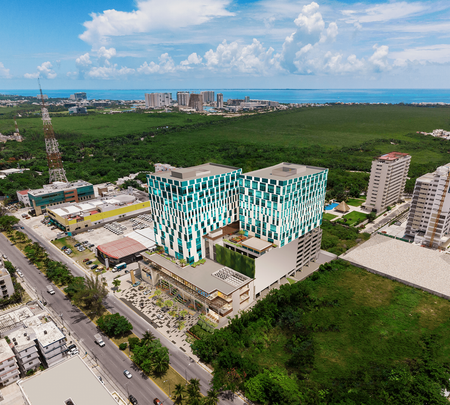 El desarrollo es de 2 torres con 16 niveles cada una, divididos por locales comerciales, oficinas y consultorios médicos, cuenta con una terraza y hermosas vistas a la ciudad y al mar caribe, el lugar perfecto para cualquier negocio.