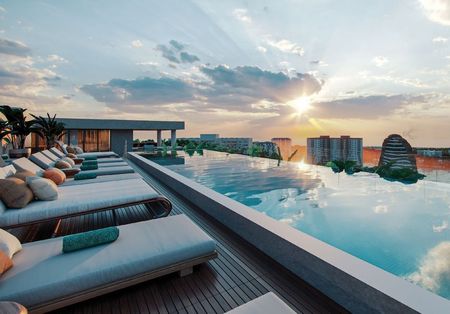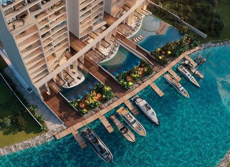 Departamento de lujo en preventa en Puerto Cancún, centro residencial de la más alta plusvalía en destino turístico en el cual se tiene acceso amplios espacios abiertos rodeados de naturaleza, playa, centro comercial, campo de golf, restaurantes, variedad de instalaciones deportivas, club de playa y mucho más.