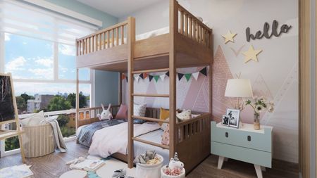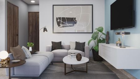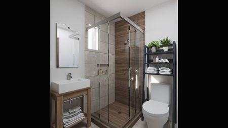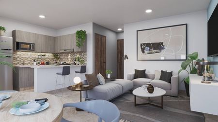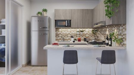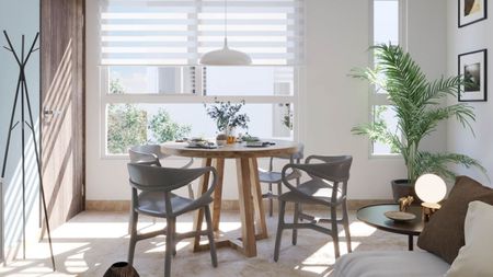 Acabados piso porcelanato, cancelería con cristal, persianas, barra cocina.