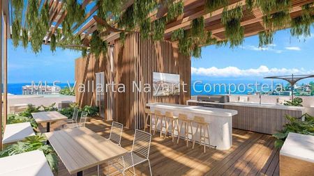 Con una ubicación privilegiada en el encantador Viejo Vallarta, Varia Living está diseñado para inspirar una nueva aventura cada día del año. Descubra una emocionante y única colección de condominios de uno y dos dormitorios y casas urbanas de dos pisos. El centro de la comunidad es una hermosa cubierta de madera de teca con vistas al océano, la ciudad y la montaña. Disfrute de una resplandeciente piscina en la azotea con carril de natación, tumbonas, sombrillas y zonas de conversación para veladas acogedoras, zona de barbacoa con asientos y zona de bar, espacio social y de relajación compartido y cómodos aseos a nivel de cubierta. Para mayor comodidad y tranquilidad, Varia Living dispone de ascensor, acceso controlado al edificio, estacionamiento seguro y bodegas.