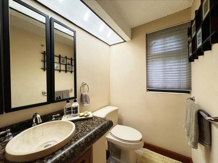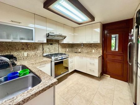 Amplios espacios, sala formal, sala adicional, comedor, antecomedor, cocina equipada, 2 medios baños, estudio/juegos/TV.