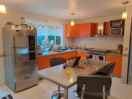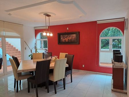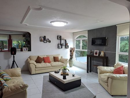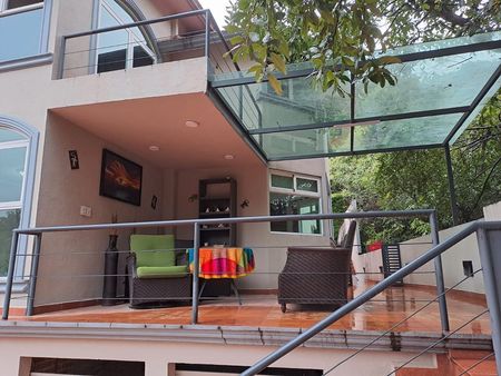 La casa cuenta con 578.35 m2 de terreno y 522.74 m2 de construcción. Sala con amplios ventanales y espacio adicional para área social. Sala de juegos, TV, estudio y/o recámara de visitas con opción a tener baño completo. El comedor tiene salida hacia el hermoso jardín trasero (plano), lleno de árboles frutales (aprox. 150m2) y a una cómoda terraza independiente a nivel de la casa. Amplia cocina con espacio adicional para alacena. Cuarto de servicio con baño completo independiente. La planta alta tiene piso laminado. Cuenta con recibidor y a nivel de la escalera, domo que le dá luz natural. Todo los techos son de gran altura. La recámara principal con balcón, vestidor y baño completo. Una de las recamaras secundarias, cuenta con estudio independiente y la tercer recámara, cuenta con balcón y baño completo. La residencia cuenta también con amplia terraza en la parte delantera. Estacionamiento subterráneo para 10 autos y bodega (obra gris). Cuenta con cisterna de 20 mil litros. Excelente propiedad, con gran potencial!!! Esperamos su llamada, sera un placer atenderle!!