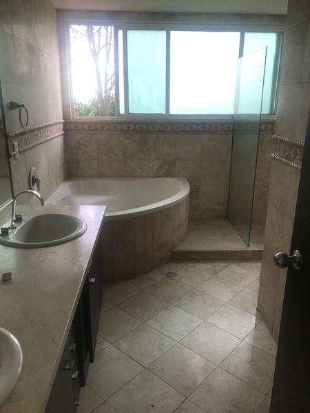Venta Departamento en Lomas Country Club Huixquilucan con 430 m2, en 240 mts habitables, 190 mts terraza, más 180 mts de uso exclusivo de jardín. Dos bodegas, 4 lugares de estacionamiento, 3 recámaras con baño cada una, la principal con vestidor las otras dos con closet, baño visitas, total baños: cuatro y medio. Family room o cuarta recámara. Cocina, lavandería, cuarto de servicio con baño completo. Casa club con alberca, gimnasio, salones para eventos, salón para niños, salón para jóvenes, cancha de fútbol, área de juegos infantiles, cafetería con terraza y hermosa vista a la fuente, área de asadores. Estacionamiento de visitas. Lobby con recepcionista, elevadores, seguridad privada 24/7, dos filtros de seguridad. Una excelente inversión Esperamos su llamada, sera un placer atenderle!!