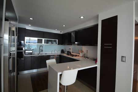 El departamento cuenta con 4 recámaras amplias con baño completo, sala, comedor, cocina integral, cuarto de servicio con baño, sala de TV y terraza con jacuzzi.