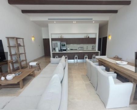 Venta magnifico Departamento Punta del Mar Cancún con 295 m2. Cuenta con acabados de lujo y de excelente calidad, cocina integral abierta con electrodomésticos y espacio muy amplio para la preparación de alimentos, family room y baño completo para visitas, 3 recamaras la principal con acceso a la terraza, baño completo con lavabo doble y un gran vestidor. Las otras 2 recamaras tienen clóset. Área de lavado y cuarto de servicio. Amenidades: gimnasio equipado, jacuzzis, alberca con hermosa vista al mar Caribe, elevador. Excelente ubicación, a unos pasos de la playa, centros comerciales y tiendas de gran prestigio. El departamento con muebles se vende en $23,500,000. Una excelente inversión, en un lugar paradisíaco. Esperamos su llamada, sera un placer atenderle!!