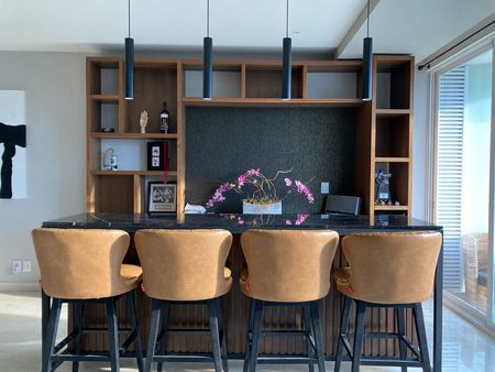 La cocina, moderna y funcional, está equipada con una amplia área de antecomedor y ofrece un ambiente ideal para disfrutar de deliciosas comidas en compañía de tus seres queridos. Además, se incluye un práctico bar para amenizar tus reuniones sociales.