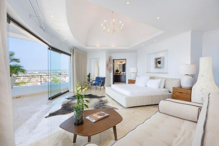 Con 9 habitaciones con aire acondicionado, cada una pensada para apreciar las vistas panorámicas, y la mayoría con espacios exteriores privados, esta villa está diseñada tanto para el disfrute colectivo como para los retiros íntimos. Los grupos grandes pueden reunirse junto a la piscina o encontrar la soledad en sus propios espacios privados, creando el equilibrio perfecto para cualquier ocasión.
