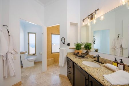 El corazón de esta casa es la experiencia de vida interior/exterior. El nivel principal de la palapa transita a la perfección a la terraza de la piscina, donde una piscina de borde infinito llama la atención, ofreciendo vistas incomparables de toda la bahía. Imagínese despertarse con el amanecer y disfrutar de las vibrantes puestas de sol desde este santuario privado.